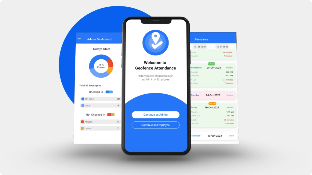 Geofence Attendance Mobile Application facilitates organizations in two way: